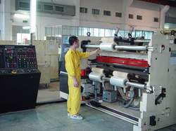 ....半成品大膜卷通过大分切和小分切分切成特定宽度及长度,完成了最终BOPP成品小卷的过程。如图6、图7所示: