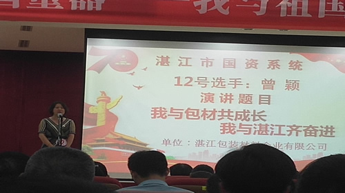 2019年7月19日,由广东省国资委部署,湛江市国资委举办的“大国重器——我和祖国共成长”演讲比赛在湛江会展中心隆重举行,我司选送曾颖同志参加比赛.我司代董事长李云峰同志和党委副书记成晔同志带领我司二十多位员工到场观看比赛,为我司选手加油鼓劲。曾颖同志以《我与包材共成长,我与湛江共奋进》为题演讲,面对国资系统各企业以及中科炼化、宝钢、南海西部石油公司等实力雄厚的选手,曾颖同志沉着应战,演讲得声情并茂,文采飞扬,发挥出色,最终以92分的高分脱颖而出,并喜获本次演讲比赛的铜奖。为我司赢得了荣誉,也得到了国资委领导的高度赞扬和充分肯定。
