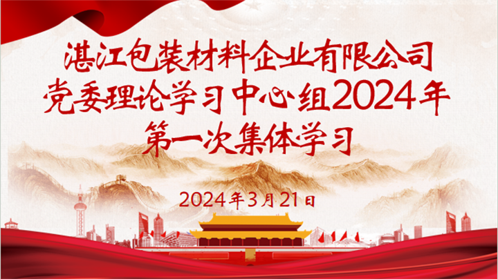 3月21日,公司党委召开党委理论学习中心组学习会,对习近平总书记在全国两会期间重要讲话精神、习近平总书记关于高质量发展重要论述摘编等内容展开了学习,党委理论学习中心组成员通过重点发言、分别研讨,结合包材实际,研究部署贯彻落实举措。党委副书记、总经理陆东旭主持会议。