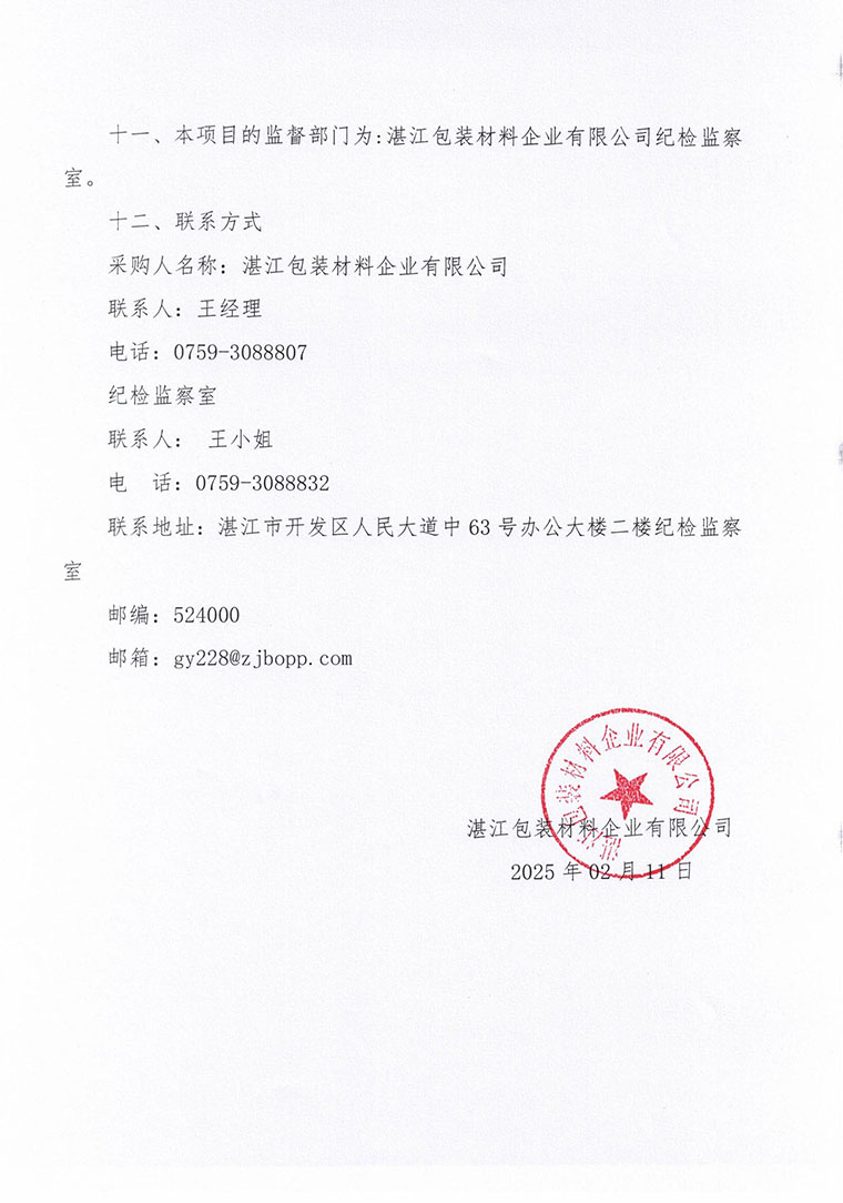 • 上一篇:湛江包装材料企业有限公司应聘人员拟录用公示 2025/2/25
