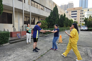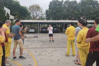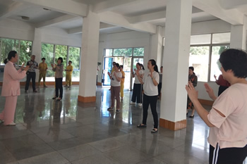 公司代董事长李云峰致运动会开幕词 八段锦老师向员工传授八段锦健身操