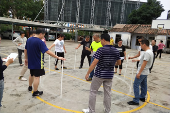 步步为营同心圆,八杆不倒如树林(不倒森林) 步调一致向前走,全凭号令来指挥(巨人脚步)