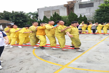 本次运动会共九个项目,包括拔河、风火轮、摸石过河、蛟龙取水、入樽、巨人脚步、不倒森林、运球比赛、六人足球赛等。公司分四个团队参加,分别是制膜车间、工务车间、分切车间和办公室。除了六人足球外,每个项目要求每个团队都是8个人(6男2女)参加。