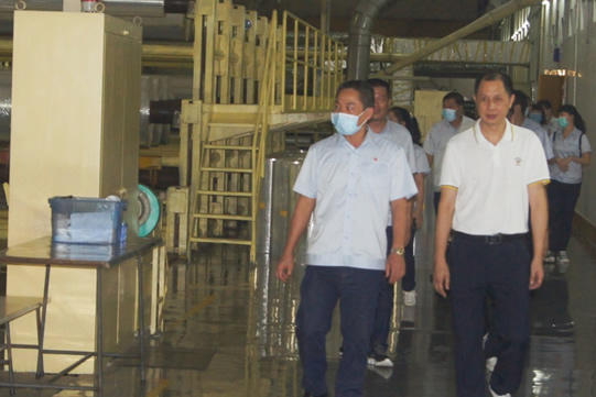 考察团一行人在公司副总经理陈广忠的陪同下,参观考察了公司生产车间。公司良好的工作环境、有序的生产流程、严格的质量控制、和谐的工作氛围、勤奋工作的员工给广东中烟湛江烟厂一行人留下了深刻的印象。